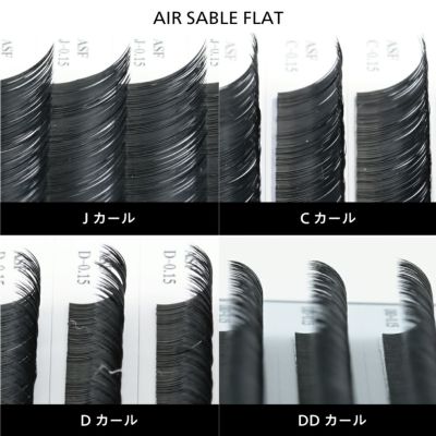 コスパ最強!エアーセーブル フラットタイプ。軽くて柔らかいのはもちろん、カールが崩れにくい形状になっています。断面は特殊加工で平たい形状をしているため、接着面も広くなり地まつ毛に瞬間フィット。高級感のある黒マットで存在感のある目元に仕上がります。