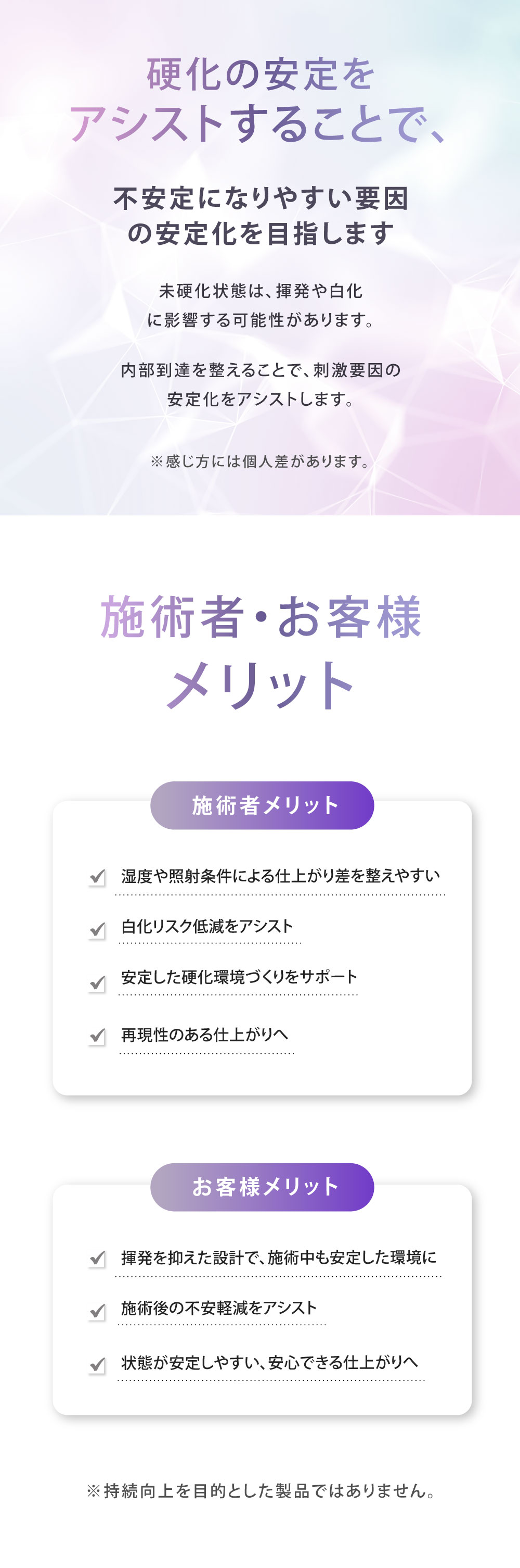 ・本製品はプロの技術者向けです。施術経験のない方への使用はできません。