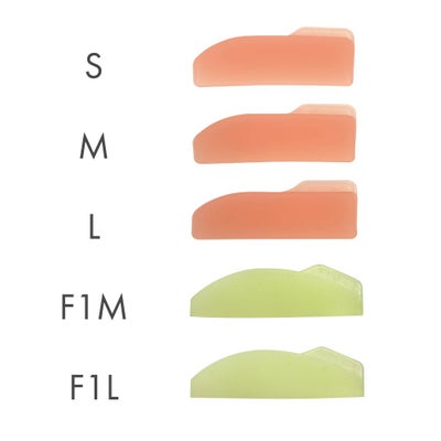 アングルリフトとは90°以上の角度を付けつつ立ち上げが可能なロッドになるので瞼が厚めの人や今までのリフトアップよりナチュラルに仕上げたい人にお勧めのロッドになります。根元にリッジが付いているためまつ毛が短い人も長い人にも使用できます。その名の通り目元がぱっちりと華やかになるアングルリフトが3サイズ、人気のNo4のロッドを大きくしたメガロッドF-1のM、L 2サイズ、計5種類が入ったセットです。