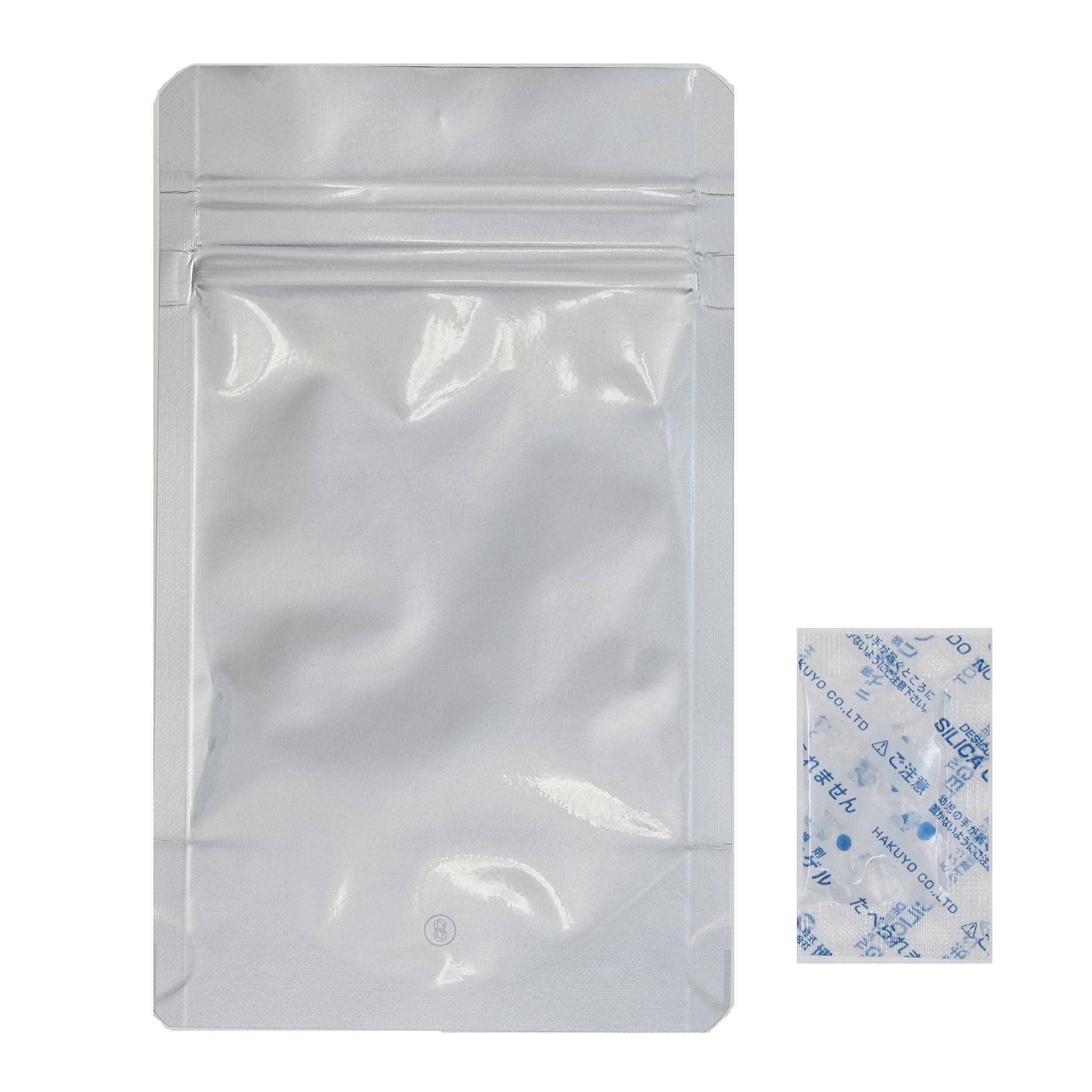 遮光性・防湿性に優れた開閉自在のチャック付グルー保管パックです。 グルーは太陽光でも劣化するため、光をほぼ100%遮断するアルミ素材がグルーの保管に適しています。必ず乾燥剤を入れてご使用ください。