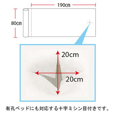 非防水。ロールタイプのペーパーシーツ(薄手タイプ)です。190cm(ベッド1台分)ごとにミシン目が入っているため、引っ張るだけでベッド1台分ずつカットできます。十字の切れ目はありません。